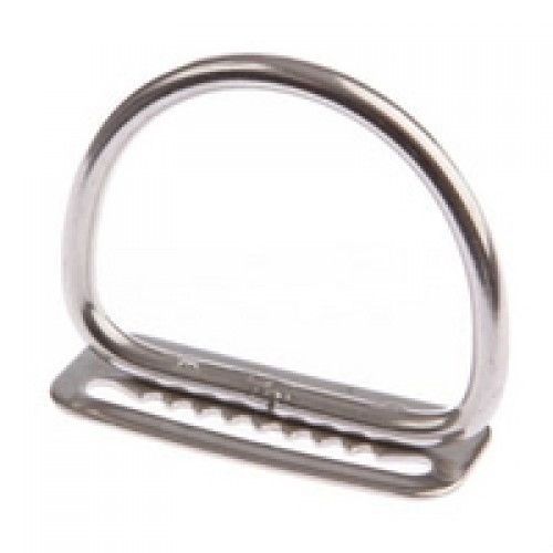 A stainless steel d-ring on a two inch serrated sliderWrite a review